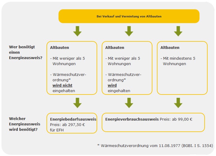 Bei Einfamilienhäusern die vor in Kraft treten der ersten Energieeinsparverordnung zum 1.11.1977 errichtet wurden und bislang nicht modernisiert wurden muss i.d.R. der bedarfsorientierte Ausweis erstellt werden.